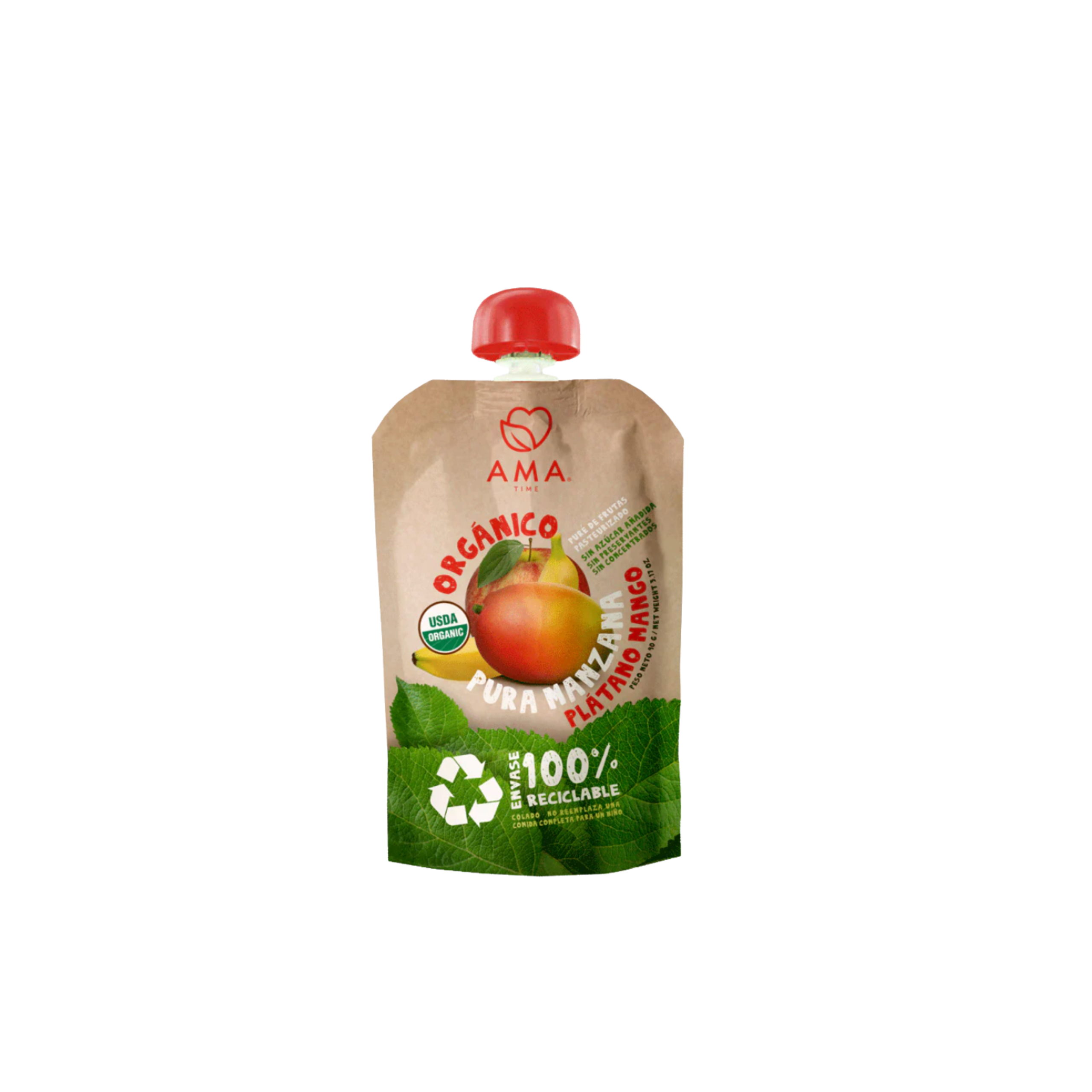 Colado Orgánico de Manzana, Banano y Mango ✅ Orgánico | Sin azúcar añadida | Sin gluten | Sin Huevo | Sin Soya | SIN PLV |